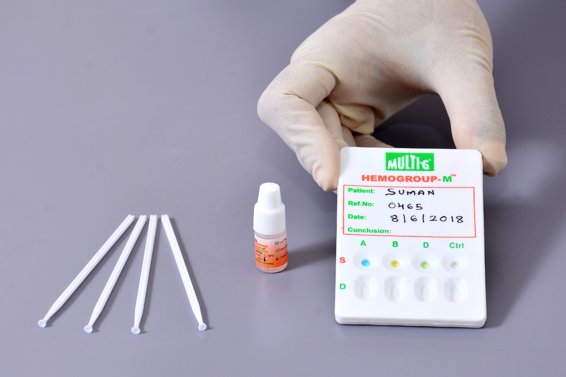 MULTI-G has developed a unique and innovative solution for rapid blood grouping ABO/RhD: Hemogroup-M, a self contained, room temperature, skill free and equipment free kit.